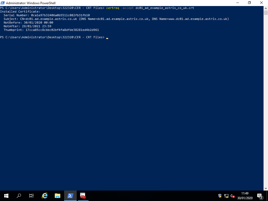 DC01.ad.example.astrix.co.uk. This is so that there are no name mismatches when validating the certificate.Security: